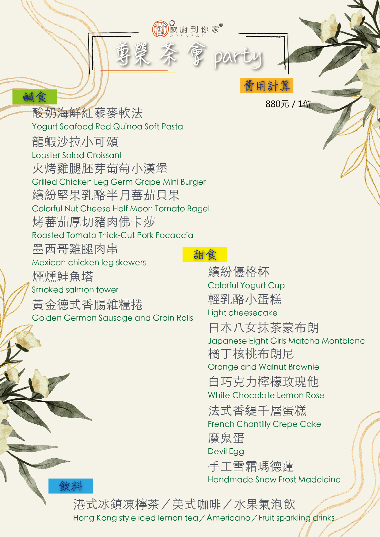 ★ 以上售價包含10%人力服務費用(含餐桌佈置)、5%運費以及訂餐相對人數一次性餐具。